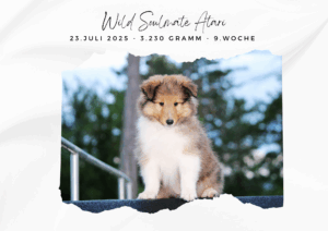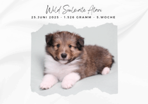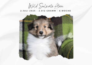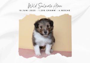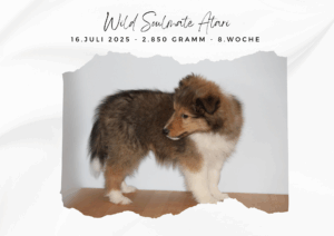 In dieser Woche ist Atari ein abenteuerlustiger und selbstständiger Welpe mit ausgeprägtem Orientierungssinn. Neugierig und aufmerksam erkundet er seine Umgebung und zeigt dabei großes Interesse an allem Neuen. Die Nähe zum Menschen sucht er aktiv und genießt Streicheleinheiten sehr. Im Umgang mit seinen Geschwistern ist er kontaktfreudig und verspielt – gelegentlich auch etwas stürmisch. Erste liebevolle Erziehungsmaßnahmen von seiner Mama hat er bereits kennengelernt und nimmt diese gut an. Auf neue Geräusche reagiert er meist gelassen, erschrickt nur kurz und bleibt dabei ruhig. - Lebenswoche: