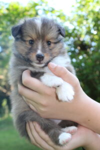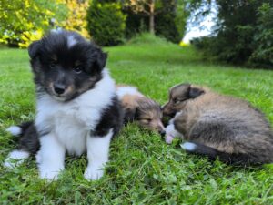 Amanda ist mutig, braucht aber manchmal einen Moment länger als ihre Geschwister, um sich auf neue Situationen einzulassen – ein sensibles kleines Herz, sucht aber aktiv Kontakt zum Menschen. Im Kontakt mit ihren Geschwistern ist sie zurückhaltender, sucht aber immer wieder Anschluss und Kontakt. Besonders süß: Wenn sie sich erschrickt, versucht sie sich mit kleinen Bellversuchen bemerkbar zu machen, beruhigt sich aber schnell wieder. - Lebenswoche: