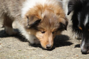 Aurora ist nach wie vor unser kleiner Wirbelwind. Sie ist sehr verspielt und erkundet neugierig ihre Umgebung, zeigt sich aber in der vergangenen Woche von ihrer vorsichtigeren und sensibleren Seite. Die Nähe zum Menschen genießt sie sehr und sucht diese häufig aktiv. Im Kontakt mit ihren Geschwistern ist sie die Hündin, die am meisten Anschluss zu den anderen sucht und besonders oft zum Spielen auffordert. Bei plötzlichen Geräuschen erschrickt sie kurz und sucht Schutz, beruhigt sich jedoch schnell wieder. - Lebenswoche: