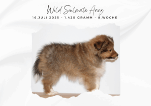 Aurora ist mittlerweile die Draufgängerin im Wurf: energiegeladen, neugierig und ungeduldig. Sie sucht aktiv Nähe und gibt bei Herausforderungen nicht auf – ihre Frustrationstoleranz ist hoch. Motorisch ist sie ihrer Zeit voraus und hat bereits sehr früh die Augen geöffnet. Auch akustisch macht sie auf sich aufmerksam und äußert sich regelmäßig mit kleinen Lauten. - Lebenswoche: