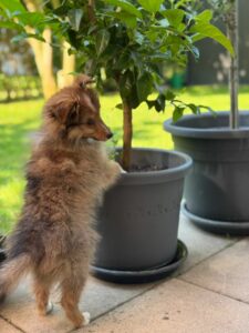 Amo ist ein aufgeweckter, unerschrockener und total freundlicher Bub, der Liebling bei unseren Gassirunden. Wenn ihm etwas Unbekanntes begegnet, wird es kurz verbellt und anschließend neugierig inspiziert. Sein Appetit ist groß: Futter, Erde, Holz, Kerne – alles, was er findet, wird ausprobiert. „Zu mir“ klappt bereits sehr gut, was besonders wichtig ist, damit er draußen nicht jeden begrüßt. Auch „Sitz“ beherrscht er schon. An der Stubenreinheit arbeiten wir noch, aber tagsüber kommt er mittlerweile besser zur Ruhe. Nachts schläft er brav in seiner Box. Ende der Woche wird er für den Welpenkurs beim „ÖGV Jedlesee“ angemeldet.