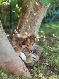 Diese Woche haben wir Aang im Rahmen eines ersten Welpentests und durch unsere täglichen Beobachtungen näher kennengelernt. An diesem Tag zeigte er sich besonders ruhig und menschenbezogen und suchte häufig den Kontakt zum Menschen. Insgesamt wirkte Aang neugierig, selbstsicher und geschickt, das deckt sich auch mit unseren Beobachtungen der letzten Wochen. Er bleibt weiterhin der Herzbub meines Mannes.