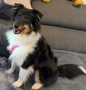 „Amanda ist wieder bisschen ruhiger geworden und kuschelt gerne. Beim Shopping in der Stadt ist sie auch nicht mehr so nervös wie früher. Sie ist sehr kinderlieb und spielt gerne mit unserem Sohn Henry. Momentan kommt sie immer wieder mal auf die Idee ihren Schatten oder Spiegelbild zu jagen. Sie möchte mit jedem spielen und gestreichelt werden. Zahnwechsel ist auch schon voll im Gange.“